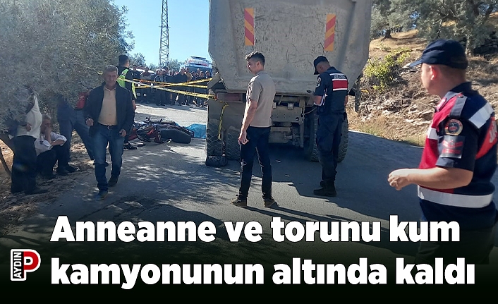 Aydın'ın Köşk ilçesine bağlı Akçaköy yakınlarında motosikletin kum kamyonunun altında kalması sonucu meydana gelen trafik kazasında anneanne ve 5 yaşındaki torunu hayatını kaybetti.