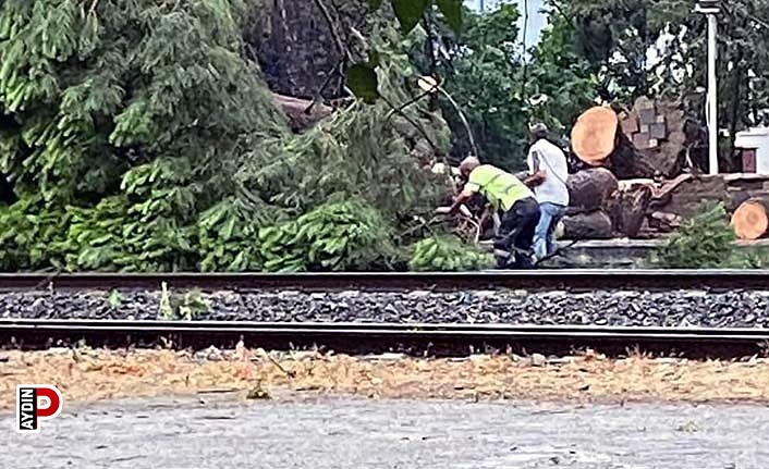 Aydın’ın Kuyucak ilçesinde fırtınada demiryoluna ağaçların devrilmesi nedeniyle tren seferleri durdu.