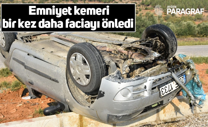 Aydın'ın Karacasu ilçesine bağlı Ataeymir Mahallesi yakınlarında meydana gelen kazada aynı aileden biri bebek 4 kişi yaralandı. Otomobilin direksiyon hakimiyetini kaybedip takla atması sonucu meydana gelen kazada emniyet kemeri bir kez daha faciayı önledi.