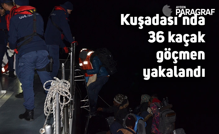 Aydın’ın Kuşadası ilçesi açıklarında yasadışı yollarla Yunan adalarına kaçmaya çalışan 36 düzensiz göçmen yakalandı.