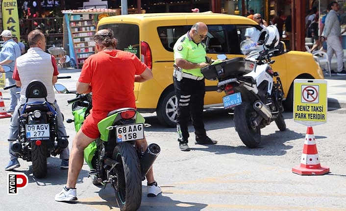 Kuşadası İlçe Emniyet Müdürlüğü’ne bağlı Trafik Tescil ve Denetleme Amirliği ekipleri, turizm sezonun başlamasıyla birlikte ilçede trafik yoğunluğunun yaşandığı dört farklı noktada motosiklet sürücülerine yönelik dün (Çarşamba) denetim yaptı. Mahmut Esat Bozkurt, Kahramanlar ve Sağlık caddeleri ile Davutlar Mahallesi merkezinde eş zamanlı olarak yapılan denetimde, motorlu sürücülere, trafiğe kapalı alana motorlu taşıtla girme, kask takmama, katlanır plakanın olmaması, seyir halindeyken cep telefonuyla konuşma, kaldırıma park etme, muayenesiz ve vizesiz motor kullanma gibi farklı maddelerden toplam 346 bin 692 lira para cezası kesildi.Denetimler sırasında, polisi görüp kaçan motosiklet sürücüleri ise sivil trafik motorize ekipleri tarafından yakalandı. Belgeleri eksik olan motosikletler de çekici yardımıyla otoparklara kaldırıldı. Yapılan GBT sorgulamalarında çeşitli suçlardan arandığı tespit edilen 4 kişi gözaltına alındı. Kuşadası’nda motosiklet sürücülerine yönelik gerçekleştirilen geniş çerçeveli uygulama sonunda kesilen ceza miktarının ise son yılların en yüksek miktarı olduğu bildirildi. Kontrollerin ilçe genelinde artarak devam edeceğini söyleyen yetkililer, motosiklet sürücülerine kurallara uyulması yönünde sürücülere çağrıda bulundu.