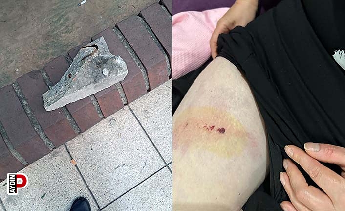 Aydın'ın Efeler ilçesinde meydana gelen olayda metrelere yükseklikteki evin balkonundan düşen beton parça 2 kişiyi yaralarken, vatandaşlar duruma tepki gösterdi.