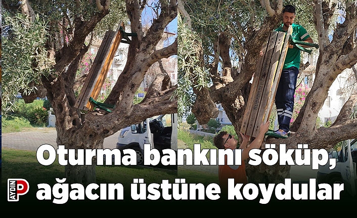 Oturma bankını söküp, ağacın üstüne koydular