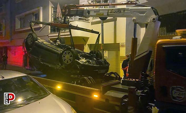 Kaza, Efeler ilçesi Güzelhisar Mahallesi Türk Ocağı Caddesi üzerinde meydana geldi. Edinilen bilgiye göre T.S. idaresindeki 09 AFK 682 plakalı otomobil, dönüş manevrası yaptığı esnada park halindeki 2 araca çarptı. Çarpmanın etkisiyle hakimiyeti kaybolan otomobil, ters döndü. Şans eseri kazada yaralanan olmazken, vatandaşlar durumu 112 Acil Çağrı Merkezi'ne bildirdi. İhbar üzerine bölgeye, itfaiye, polis ve sağlık ekipleri sevk edildi. Ters dönen otomobilinden kendi imkanları ile çıkan sürücünün, aşırı derecede alkollü olduğu iddia edildi. Sürücü, kendisinden bilgi almaya çalışan polislere zor anlar yaşatırken, polise direnmeye devam eden sürücü emniyete götürüldü. Kaza sonrasında park halindeki 2 araçta ve kaza yapan araçta maddi hasar meydana gelirken, kapanan yol otomobilin çekici marifetiyle kaldırılmasının ardından yeniden trafiğe açıldı. Kaza ile ilgili inceleme başlatıldı.