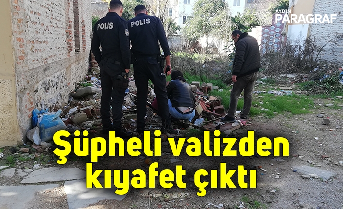 Aydın’ın Efeler ilçesinde, boş bir arsaya bırakılan şüpheli valizden kıyafet çıktı.