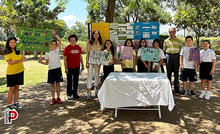 Aydın'da 'Okullarda Orman Programı' çerçevesinde Özel Başak Koleji Orman Timi öğrencileri 5 Haziran Dünya Çevre Günü çerçevesinde okul bahçesinde kurulan stantta arkadaşlarını günün anlam ve önemi çerçevesinde bilgilendirdi.