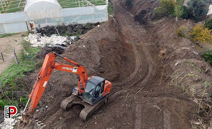 Aydın’ın Nazilli ilçesinde yağışlar sonrası yağmur sularının kontrol altına alınması ve taşkınların önünü geçilmesi için dere ıslahları devam ediyor.