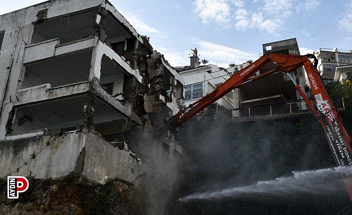 Can ve mal güvenliğini tehdit eden, hasarlı ve afete dayanıksız olduğu tespit edilen yapıların yıkım çalışmalarını sürdüren Kuşadası Belediyesi, son olarak Mahmut Esat Bozkurt Caddesi üzerinde bulunan bir binanın yıkımını kontrollü şekilde gerçekleştirdi.