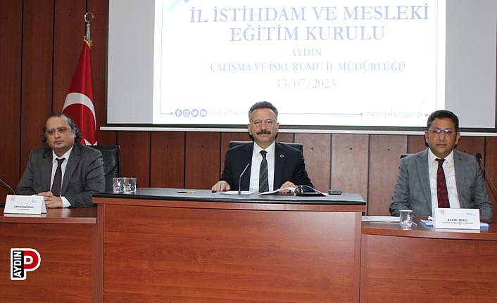 Aydın İl İstihdam Kurulu Mesleki Eğitim Kurulu Toplantısı, Aydın Valisi Hüseyin Aksoy başkanlığında gerçekleştirildi. Aydın’ın, işgücü istihdam ve mesleki eğitim ihtiyacını tespit etmek, mesleki ve teknik eğitim okul ve kurumları ile işletmelerde yapılacak mesleki eğitim ve istihdam konularında etkinlik ve verimliliği artırmak amacıyla düzenlenen Aydın İl İstihdam Kurulu Mesleki Eğitim Kurulu 2023 yılı 3. Olağan Toplantısı’nda Aydın genelindeki işgücü sayısı açıklandı.