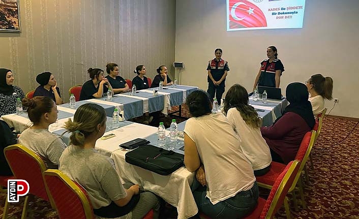 Aydın'ın Çine ilçesinde bir fabrikada çalışan kadınlar, "kadına karşı şiddet" konularında bilgilendirildi.