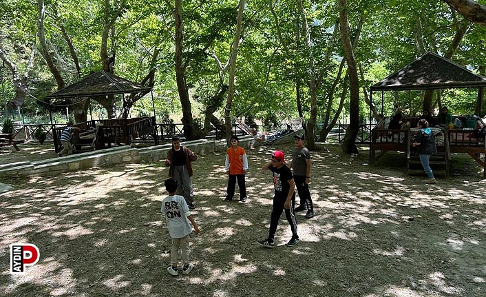 Aydın’ın Buharkent ilçesinde sıcak havadan bunalanların ilk adresi Gelenbe Mesire alanı oluyor.