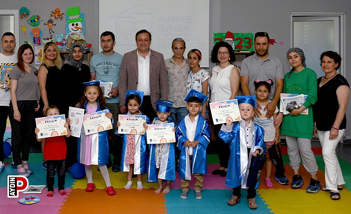 Kuşadası Belediyesi tarafından Güler Aydın Süzgeç Sosyal Tesisleri bünyesinde kente kazandırılan 'Anne-Baba Çocuk Merkezi'nde eğitim gören 3-6 yaş arası minikler, düzenlenen mezuniyet töreniyle sertifikalarını aldı. Belediye Başkan Yardımcısı Seyfi Seyhan Suvari’nin de katıldığı etkinlikte babalar gününü de kutlayan çocuklar çifte sevinç yaşadı.