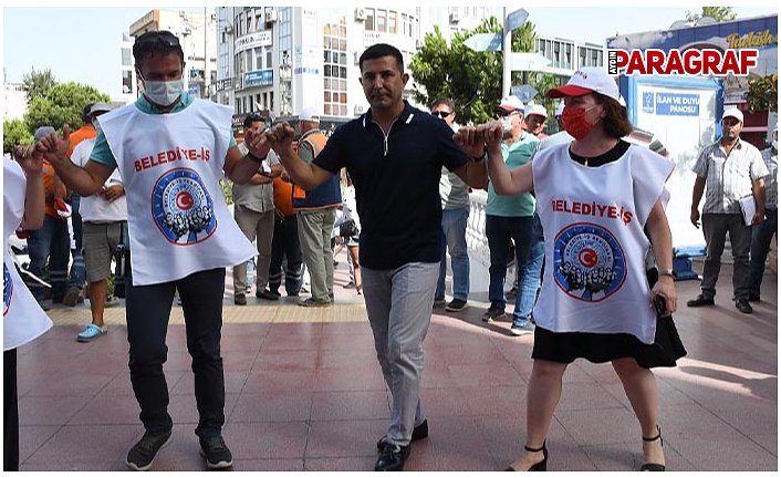 Kuşadası Belediyesi ile Belediye İş Sendikası arasında sürmekte olan toplu iş görüşmelerinin uzlaşma ile sonuçlanmasının ardından imzalanan toplu iş sözleşmesi halaylarla kutlandı. Kuşadası Belediye Başkanı Ömer Günel, çalışanlarının yanında olmaya devam edeceklerini söyledi.