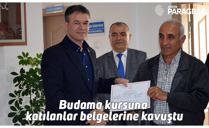 Didim İlçe Tarım Müdürlüğü, Didim Ziraat Odası ve Didim Halk eğitim merkezi müdürlüğü işbirliğiyle düzenlenen zeytin budama kursuna katılan kursiyerler belgelerini aldı.