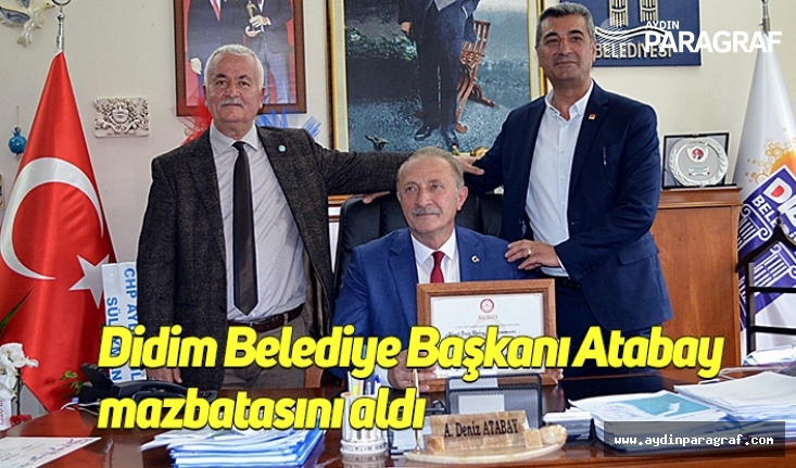31 Mart yerel seçimlerinde ikinci kez Didim Belediye Başkanı seçilen A. Deniz Atabay ilçe seçim kurulundan mazbatasını aldı.