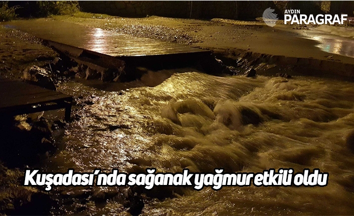 Kuşadası'nda gece yarısı bir saat süren sağanak yağmur, yaşamı olumsuz etkiledi. Kuşadası'nda gün boyu aralıklarla devam eden sağanak yağmur gece yarısı saat 01.30 sıralarında gök gürültülü şekilde etkili oldu. Sağanak yağmur sonucu Söke-Kuşadası karayolunda zaman zaman aksamalara neden olurken, yağmur suları Yeni Aydın yolu kavşağı, Otogar kavşağı ile Kuşadası Ticaret Odası ile Kuşadası Emniyet Müdürlüğü önünde de yolun karşılıklı bölümlerini göle çevirdi. Ayrıca, sahil bandı üzerinde Sahildeki Atatürk Bulvarı ile şehir merkezindeki Adnan Menderes ve İnönü Bulvarı’nda ise yağmur suları yolları su altında bıraktı. Meteorolojik uyarıya rağmen rögarlar temizlenmeyince yaşanan tıkanıklık sonucu ortaya şelale şeklinde ilginç görüntüler çıktı. Bu arada, Siteler bölgesi ile Güzelçamlı ile Davutlar’da da sağanak yağmur nedeniyle bazı evlerin giriş bölümlerini su bastı.