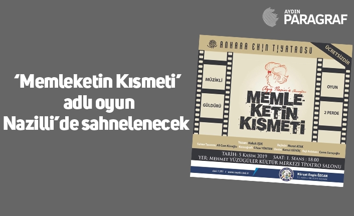 Ankara Ekin Tiyatrosu, Memleketin Kısmeti adlı Tiyatro oyunu ile Nazilli’de sahne alacak.