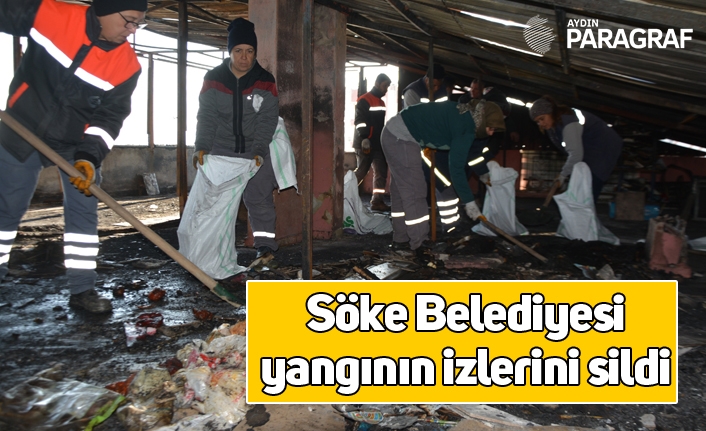 Aydın'ın Söke ilçesinde çıkan çatı yangının izleri Söke Belediyesi tarafındann yapılan temizlik çalışması ile silindi.