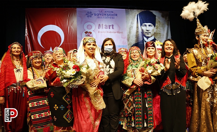 Aydın Büyükşehir Belediyesi, 8 Mart Dünya Emekçi Kadınlar Günü’ne özel Aydın Kültür ve Turizm Derneği işbirliğiyle defile düzenledi. Gazi Mustafa Kemal Atatürk’ün annesi Zübeyde Hanım’ın canlandırdığı manken sahneye çıktığında büyük alkış alırken Aydın Büyükşehir Belediye Başkanı Özlem Çerçioğlu “Biz, Türkiye’nin güçlü kadınları olarak ülkemizin hem dünü hem yarınıyız” dedi.