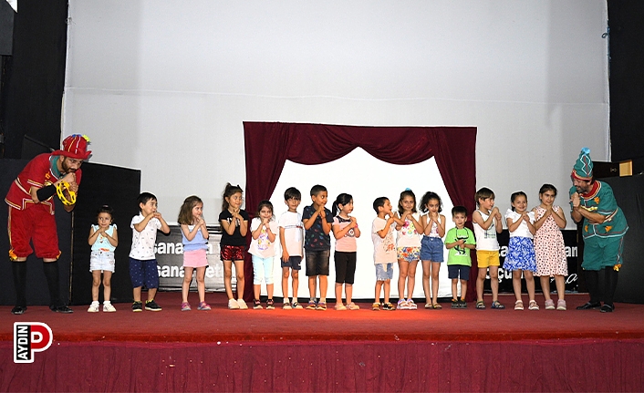 Aydın'ın Çine ilçesinde "Karagöz Öğreniyor" isimli müzikli danslı çocuk oyunuyla Çineli minikler eğlence dolu bir gün yaşadı.