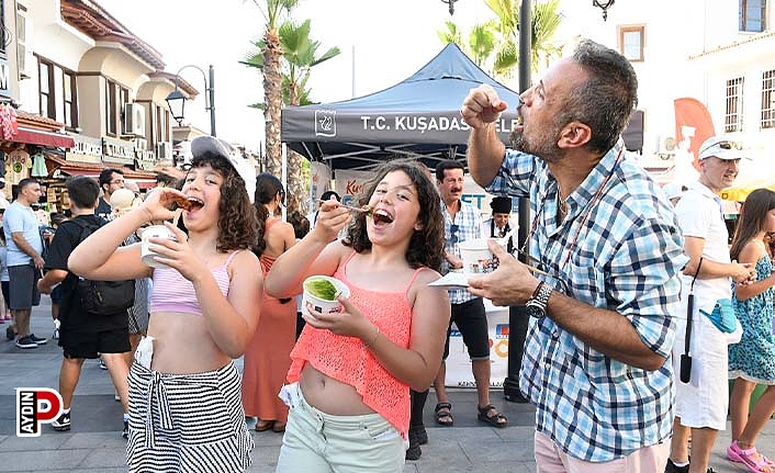 Kuşadası Belediyesi ile Kuşadası Altın Güvercin Kültür Sanat ve Tanıtım Vakfı (KUSAV) tarafından Ayhan Sicimoğlu’nun danışmanlığında bu yıl ikinci kez düzenlenen Kuşadası Sokak Festivali ikinci günü tadım atölyeleri ve lezzet durakları ile renklendi. Geçtiğimiz yıl Ege Bölgesi ve Kuşadası’na has yöresel yemeklerin servis edildiği lezzet duraklarında bu yıl deprem bölgesinin birbirinden lezzetli yemekleri ikram edildi.Balıkçılar Meydanı, Barbaros Hayrettin Paşa Bulvarı, Kale Kapısı, Kasım Yaman Parkı, Atatürk Meydanı Sanat Sokağı, Kaya Şavkay Meydanı gibi kentin 11 farklı noktasında servis edilen Harput çorbası, öcce, çiğ köfte, kişir pilavı, kayısılı kavurma, beli kırık pilavı gibi yöresel yemekler yoğun ilgiyle karşılandı. Katılımcıların lezzet duraklarındaki yemeklerden tatmak için satın aldığı biletlerin deprem bölgesinde belirlenecek bir aşevine aktarılacak olması ilgiyi artırdı. Kuşadası Belediye Başkanı Ömer Günel ile eşi Duygu Günel, KUSAV Başkanı Levent Köylü ve Ayhan Sicimoğlu da tüm lezzet duraklarını dolaşarak yemeklerin tadına bakıp festival katılımcıları ile sohbet etti.